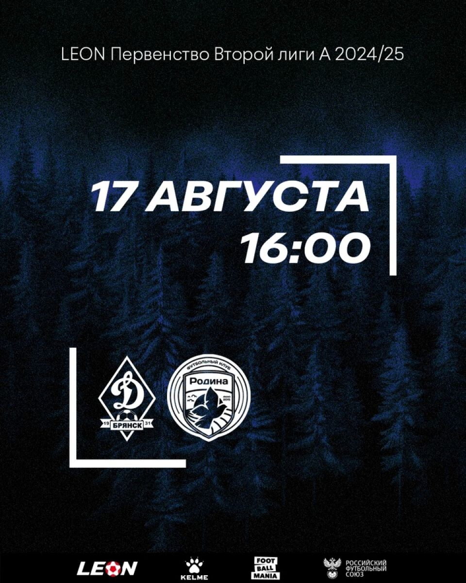 Сегодня футболистам брянского «Динамо» предстоит нелёгкое испытание. В гости к динамовскому клубу, который неудачно стартовал в сезоне и занимает предпоследнее, девятое место, приедет лидер турнира московская «Родина-2». Столичная команда одержала три победы подряд, а в последнем туре разгромила со счётом 3:0 крепкий «Краснодар-2». Динамовцам пора начать набирать очки, поскольку можно застрять в зоне вылета, а там могут нарисоваться перспективы второго дивизиона. Команды между собой встречались два раза, в 2022 году, когда они играли в дивизионе А Второй лиги: в Брянске игра закончилась вничью 0:0, а в Москве со счётом 2:1 победила «Родина». Начало матча в 16.00.
