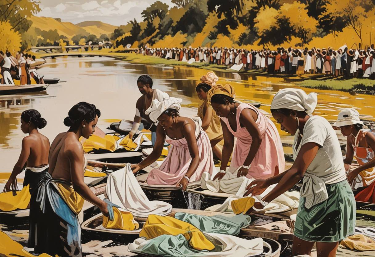 Каждый день еще на рассвете мойщик обходит дома, чтобы собрать грязное белье. Некоторые из его заказчиков живут в трех километрах от «прачечной». Собранную одежду мойщик везет в деревянной коляске или несет на голове в большом узелке. У реки его приветствует многоязычный хор голосов.