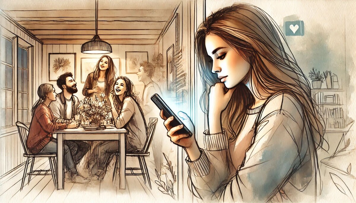 Алина вбежала в квартиру, едва удерживая в руках сумки с покупками. Тренинг закончился позже, чем она планировала, и теперь у неё оставалось совсем мало времени до вечернего эфира в сети. Её подписчики ждали обещанную трансляцию, а она знала, что не может их разочаровать. Каждая новая подписка, каждый лайк и комментарий были для неё доказательством того, что она на правильном пути. В это время на кухне сидел Виталий, её муж, и задумчиво листал газету — в последний год он часто так делал, уходя в мир печатного слова, когда не находил сил обсуждать с Алиной её новые идеи для блога. — Ты опять за своё? — Виталий устало вздохнул, когда увидел Алину, которая поспешно вынимала ноутбук из сумки. — Мы вообще сможем поужинать вместе? — Прости, Виталь, я только на полчаса, — быстро ответила Алина, ставя ноутбук на стол и настраивая камеру. — Мне просто нужно поговорить с подписчиками, у них там вопросы. Я обещала рассказать, как правильно развивать личный бренд... — А как насчёт нашего бренда? —
