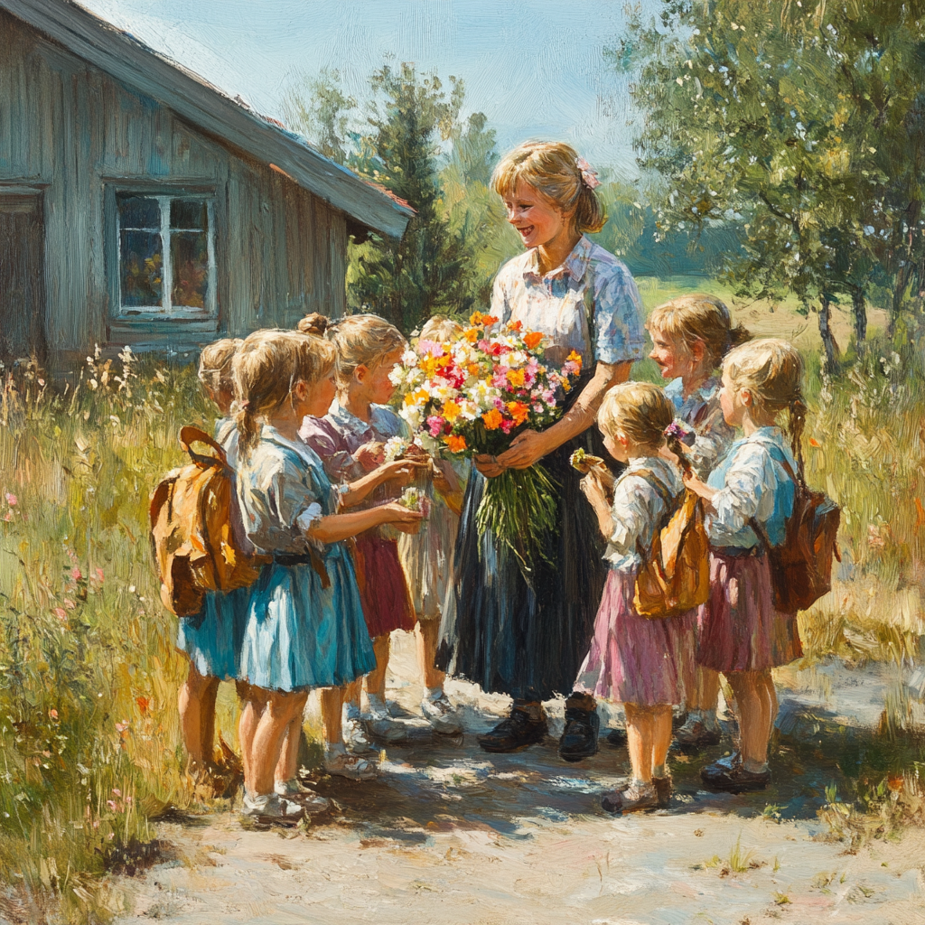Это могли быть полевые ромашки, дачные астры, бархатцы, но проявить уважение к учителю и школе считалось обязательным.