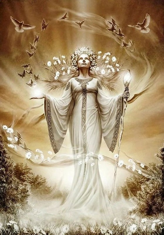 В самом центре Родовой Поляны стояла высокая стройная женщина в длинном белом одеянии, широкие рукава и подол которого были расшиты красной нитью. Ее русые волосы ниспадали на плечи, а голову украшал широкий венок из ярких цветов. Увидев эту красивую женщину, Ульяна сразу же поняла, что это и есть Берегиня ее Рода.