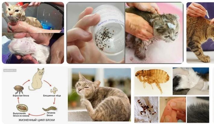 Прежде чем пользоваться каплями, надо полностью избавиться от появившихся блох! Для этого котов моют противоблошным шампунем, при большом количестве паразитов моют повторно, через несколько дней. Только после этого можно надевать ошейник или обрабатывать холку каплями, чтобы кот был защищен от повторного заражения.