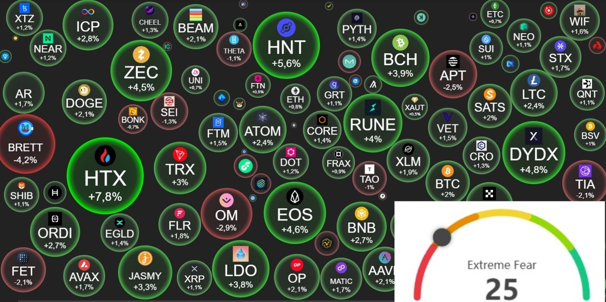 Сегодня рынок в плюсе, BTC сейчас торгуется 59300$, ETH - 2600$.