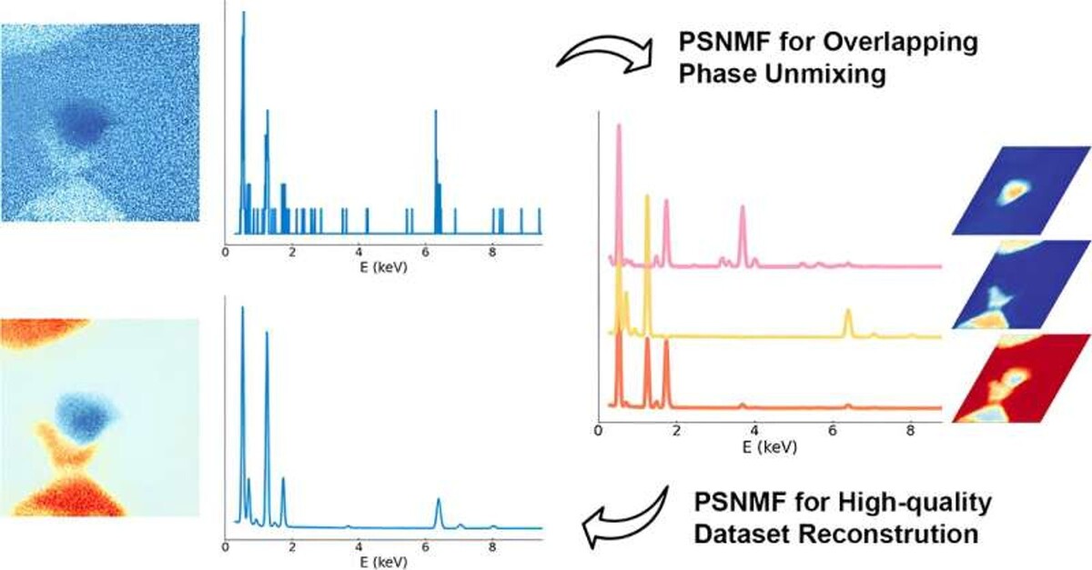 Команда исследователей, включая Хуи Чена, Дункана Александера и Сесиль Эбер, разработала новый метод под названием PSNMF (основанное на неотрицательной матричной факторизации пан-шарпенинг), который значительно повышает ясность и точность данных EDX. Их метод сперва объединяет данные с близлежащих пикселей, улучшая отношение сигнал/шум, а затем использует неотрицательную матричную факторизацию для анализа этих данных. В итоге они получили качественные спектральные данные, сохраняя при этом высокое пространственное разрешение.