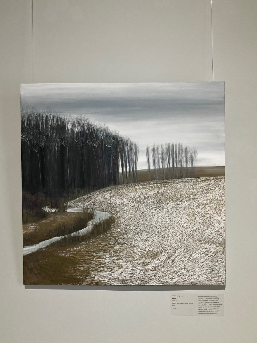 Память, воспоминания и ностальгия - основные темы творчества художницы Марии Стадник. Индустриальное, самобытное настроение выставки поглощает полностью мое внимание. С интересом рассматриваю амбары, лесные пустоши и убранные поля. Рассматривая экспозицию, ты погружаешься в другую реальность: просторную и свободную, наполненную ароматом полей и запахом осеннего ветра. Изображенная на картинах функциональная архитектура представлена в изоляции и лишена исторического контекста: на ней нет отвлекающих деталей, которые указывают на конкретное место или время. Парадокс представленных пейзажей в том, что в безлюдных пространствах раздаётся эхо человеческого присутствия. Через портреты зданий и сооружений, мы можем воссоздать психологический портрет их обитателей. Картины Марии Стадник выполнены в технике монотипия – это что-то среднее между живописью, рисунком и эстампом, она позволяет создавать рисунки на любой поверхности, а затем переносить на бумагу. В ней работали многие знаменитые х