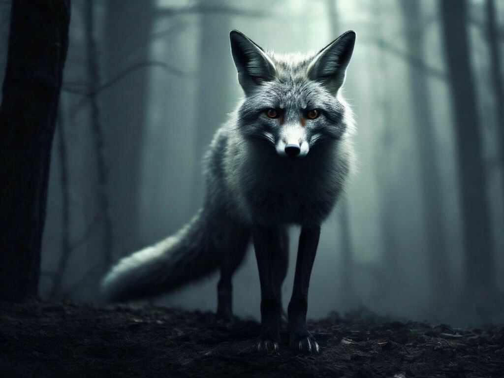 В темном лесу, где деревья переплетались, образуя зловещие тени, ходили слухи о призраке лисы. Местные жители говорили, что она была когда-то обычной лисой с ярким рыжим мехом и хитрыми, блестящими глазами, но погибла в жестокой охоте. С тех пор её дух бродил по лесу, и никто не смел туда заходить после заката. Однажды группа друзей решила проверить, правда ли это. Они собрались у костра на краю леса, смеясь и рассказывая истории о призраках. Но когда ночное небо окрасилось в черный цвет, а луна скрылась за облаками, до них донесся странный шорох. Они замерли, прислушиваясь. Ветви трещали, а в воздухе витала зловещая тишина. Вдруг один из них, по имени Сергей, заметил яркие глаза, сверкающие из темноты. Это были глаза лисы — не просто животного, а существа с тонким, грациозным телом, окутанным легким туманом, словно сама ночь придавалась ей. Её шерсть казалась невидимой, а движения — плавными и призрачными. Друзья почувствовали, как страх сковывает их сердца. Не в силах отвести взгл