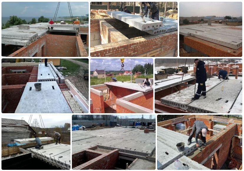 Мы тоже столкнулись с проблемами при заказе плит — очень долго они к нам ехали, заказывать и правда лучше заранее. Ещё в каждой плите имеются отверстия, они нужны для транспортировки и погрузки плит. Эти отверстия потом тоже заделываются бетоном. Причём бетона или как некоторые используют бетон, уходит очень много на эти отверстия. Плиты перекрытия укладываются на несущие стены здания. Плиты кладутся насухую или на раствор, причем при укладке плиты на раствор его легче выровнять после укладки. Между плитами должен быть шов, который потом тоже заливается бетоном.