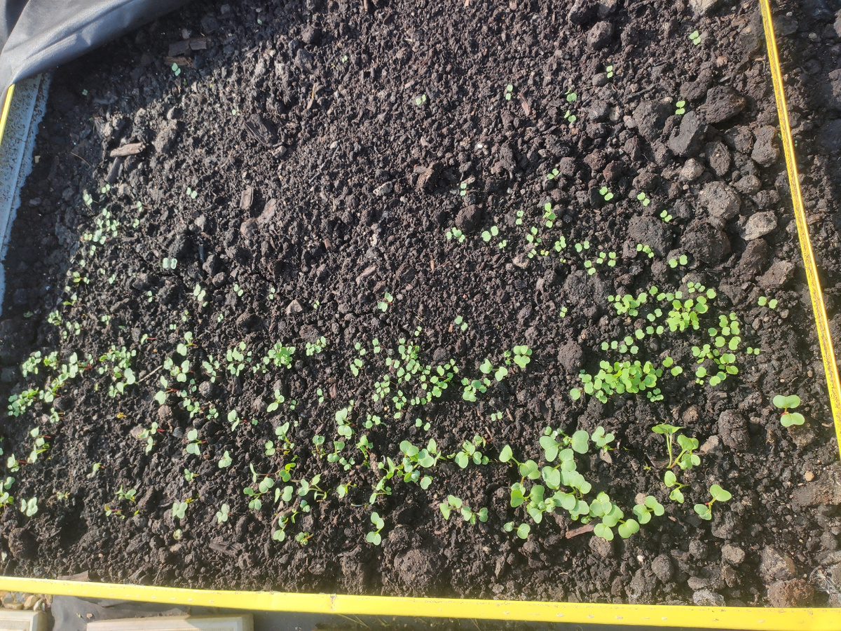 Пошла утром осмотреть владения. На грядке проросли ростки. В начале решила, что это редиска. Прочитала, что ее надо прорядить. Потом решила поискать, как выглядят ростки моей руколы и поняла, что фиг их отличишь от редиски. Пока прореживала отметила, что одни ростки с красными стержнями, а другие с белыми. В общем, решила тогда в этом экспериментальном сезоне ничего не прореживать. Семена и так все перемешались после варварского полива. На второй грядке тоже что-то проклюнулось. Видите что-то мелкое и зеленое? На этом радостные новости закончились. Подошла к яблоне, а у нее часть листьев покрылись какими-то пятнами: Пошла читать сеть, а там по описанию куча всего подходит. Начиная от бактериального ожога, при котором дерево надо вырубить: И заканчивая ржавчиной, паршей, бурой пятнистостью, альтернариозом и хлорозом. Еще кто-то и грызет ее похоже: КАК вы вообще отличаете одну болячку от миллиона других? Пошла дальше, а тут еще и малинник стремно выглядит: Еще несколько дней назад