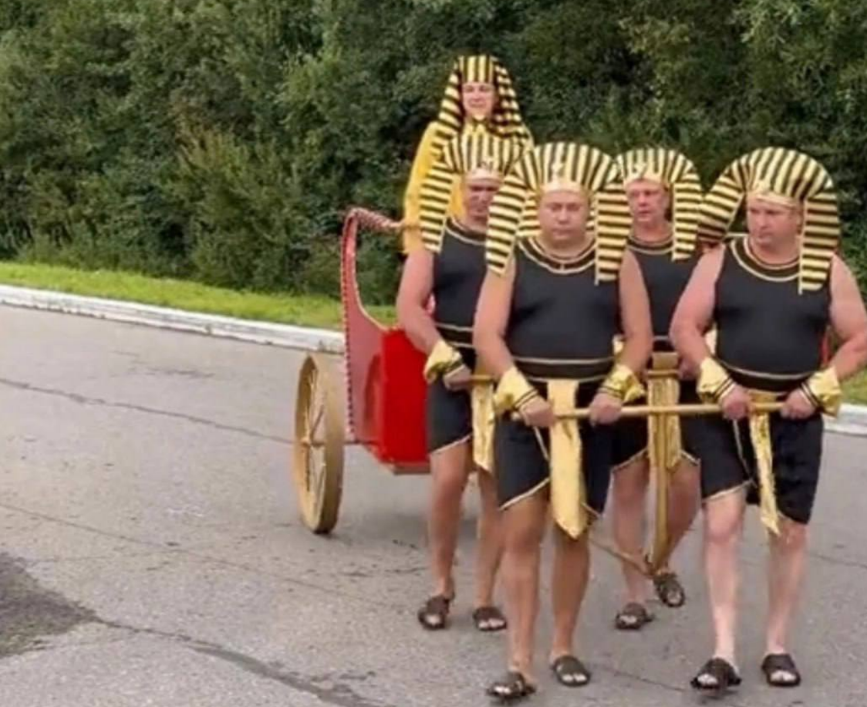 Завязка нашего рассказа начинается с того, что Эльман Назифович, видимо, решил, что просто вечеринка - это скучно. А что если отпраздновать день рождения, став фараоном на один день? И вот, не долго думая, сотрудники предприятия превращаются в живую тележку, на которой гордо восседает их управляющий, словно фараон древнего Египта.