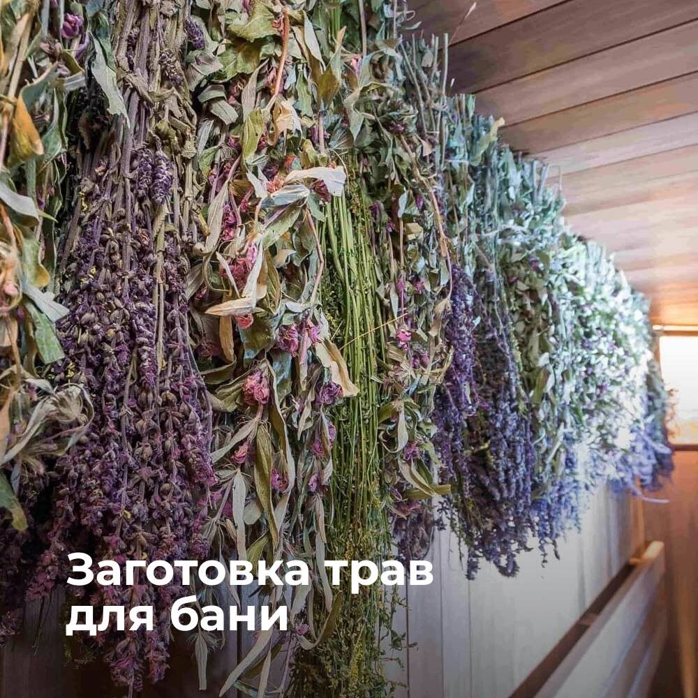 🌾Что часто используют для создания самой неповторимой атмосферы в бане? Конечно же, травы! Август — последний месяц, когда можно собрать свежую траву и сделать заготовки на долгую зиму. 🟢Что делаем? Сушим травы в сухом и хорошо вентилируемом помещении, но не на солнце. Можно развесить их небольшими пучками на веревке или разложить тонким слоем на ткани или бумаге. При горизонтальной сушке, необходимо обязательно переворачивать стебли, чтобы избежать плесени. Также следует всегда менять ткань или бумагу на которых будет сушиться трава. 🟢В чем хранить? Для хранения трав часто используются мешочки из натуральной ткани: лен, хлопок, мешковина или канва. Такие мешочки прекрасно пропускают воду и воздух. Мешочки должны быть хорошо выстираны, пропарены и проглажены во избежание появления плесени. Альтернатива — бумажный пакет. Но точно не стоит хранить траву в целлофане — она быстро испортится. ✅Конечно, желательно делать заготовки каждый год, но некоторые виды трав смело выдержив