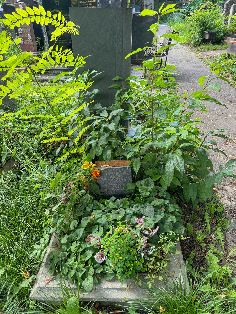 На 6 участке у дорожки под малозаметным заросшим памятником покоится предприниматель Владимир Рачук (1949-1994).