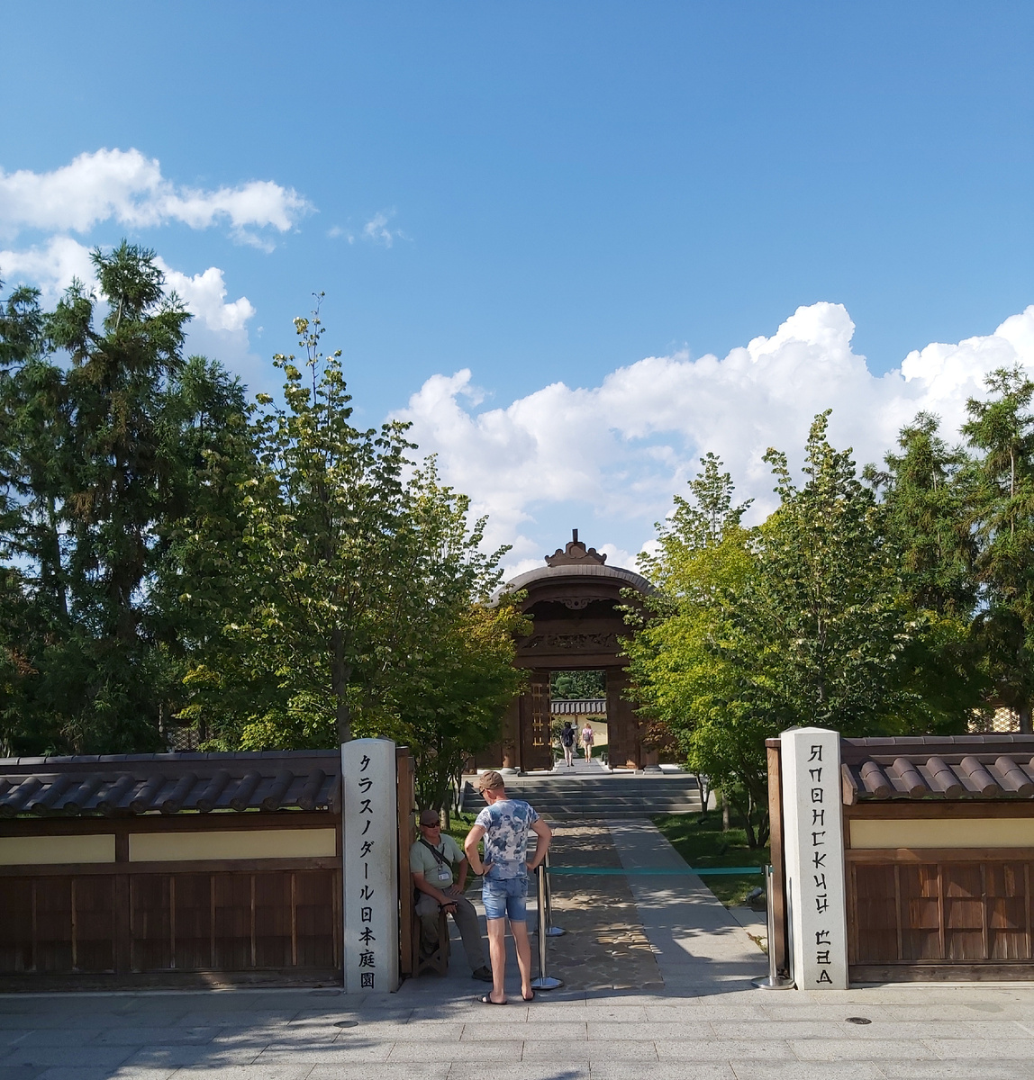 Японский сад-самая новая и самая популярная локация в знаменитом парке Галицкого. Он был открыт полтора года назад, но очереди желающих увидеть это чудо стоят до сих пор, хотя они уже и не такие длинные, как были изначально. Насмотревшись фотографий в интернете, я тоже мечтала попасть в этот сад, и когда выдалась возможность поехать в Краснодар, решила увидеть его во что бы то ни стало! День для посещения специально выбрала рабочий (вторник), надеялась, что людей будет меньше, и, как потом поняла, сделала правильно, в очереди одна женщина жаловалась, что в воскресение простояла весь день, но так и не попала. Запускают в Сад по бесплатным QR-кодам, которые выдаются у входа. По одному коду можно зарегистрировать максимум двух человек. Выдают коды примерно 1 раз в полтора часа, количество каждый раз разное, может быть 40, а может и 25, в зависимости от того, сколько человек вышло за это время. Получив код, гулять по Саду можно сколько угодно. В итоге, попасть в заветный Сад удалось тольк