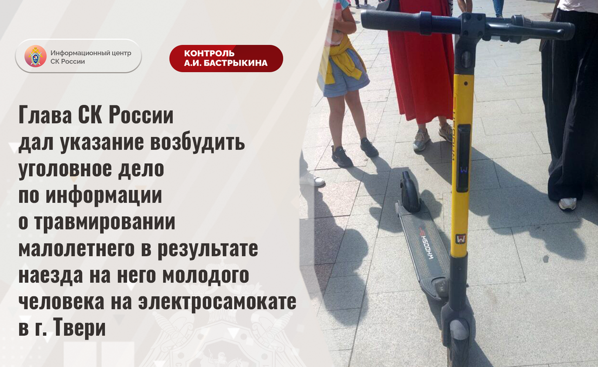 Глава СК России дал указание возбудить уголовное дело по информации о травмировании малолетнего в результате наезда на него молодого человека на электросамокате в г. Твери