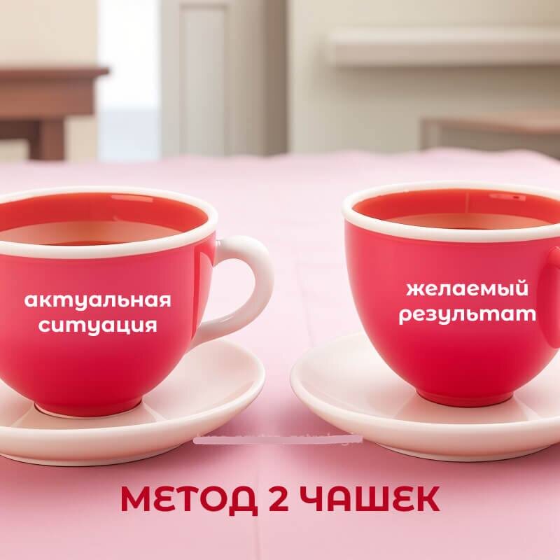 Первая чашка будет представлять вашу актуальную ситуацию, а вторая— желаемый результат.