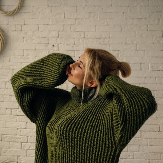 - Одежда должна быть на 2 размера больше, а если Вы высокая, то в 3 раза больше Вашего размера. Если не получается найти свитер на 3 размера больше, попробуйте поискать в мужском отделе.