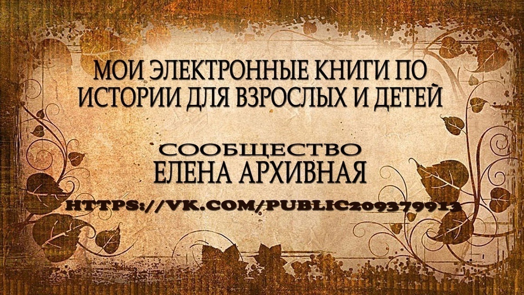СООБЩЕСТВО Елена Архивная https://vk.com/public209379913ЗДЕСЬ я регулярно публикую свои новые книги в формате PDFСТРАНИЦА Елена Архивная – мои статьи, посты, видео https://vk.com/id573647708