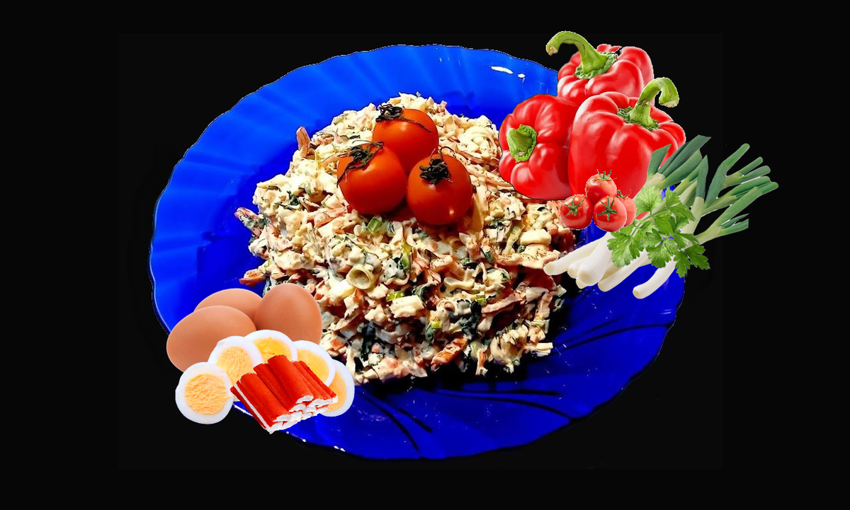 Простенький салатик с крабовыми палочками и болгарским перцем