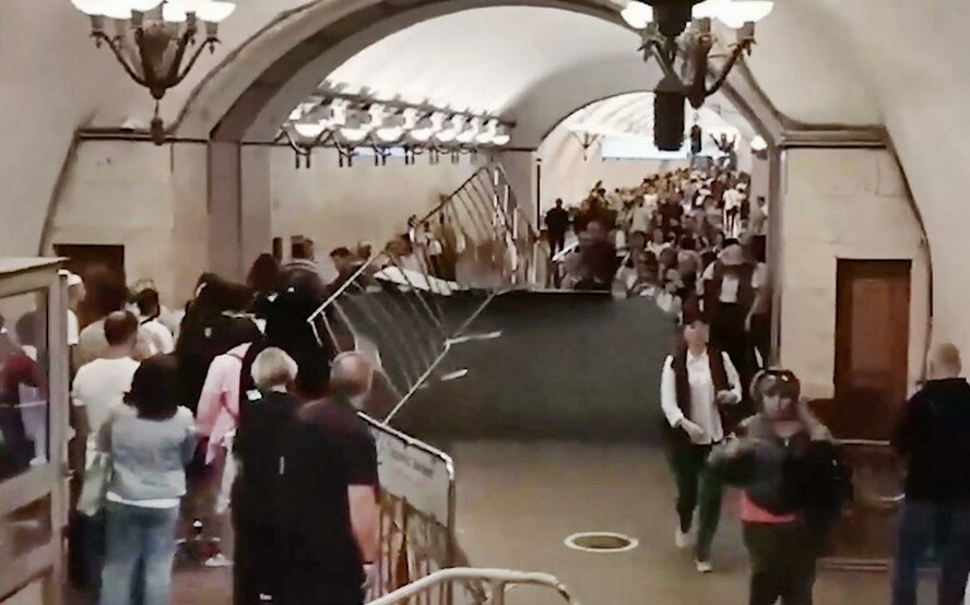 2. Сразу после срабатывания системы, эскалаторы перестали функционировать, а освещение словно нарочно решило добавить драматизма, погаснув и оставив пассажиров в полумраке.