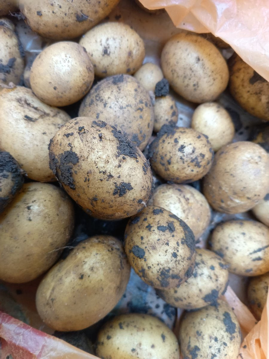 Всем приветик, я наконец- то занялась хозяйством ) По минимуму. День провела на даче. Муж пошел с утра, полил, потом я его отпустила отдыхать, выкопала немного картошки Горжусь собой, у нас опять пекло, 45 на солнце, что бы я делала на даче, если бы не картошка? Я засадила в каждый уголок, ну хотя бы мы с картошкой теперь ) Вот пожарили сегодня мой урожай ) Роза расцвела по второму разу Интересный такой оттенок, оранжево - красный. Это имеется в виду, что мы сажали желтый - купили как желтую розу - а выросла вот такая вот. Обожаю все желтые цветы. Из урожая есть еще винный виноград - мелкий и суховатый в этом году. Я, чтобы подбодрить мужа, который купил сушилку - а сушить в ней нечего - подкинула ему идею сушить виноград. Для этого надо оборвать весь виноград сразу (его немного) - а он весь вверху на сирени. Предложила ему в очередной раз купить нам высокую стремянку - он не хочет. Она бы нам вообще не помешала - у нас еще вишня есть в небо. Почистила малину. Покраси
