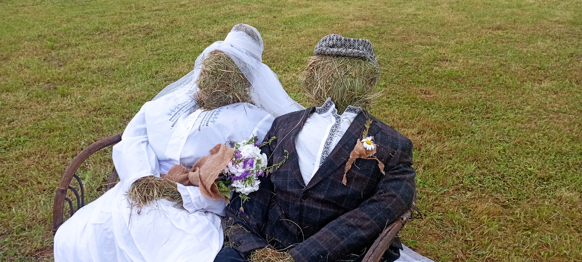 День Терема в Асташово, который начался с дождя. Сильного, проливного, который многообещающе переходил в затяжной, нудно моросящий. Мы с мужем сидели в машине и любовались, как сквозь дымку стекающих по стеклу дорожек проступают узнаваемые сказочные башенки и шпили лесного терема. Печально смотрели на испугавшихся дождя гостей, сидевшие за пустым свадебным столом соломенные Жених и Невеста... Но не тут-то было. Никто из гостей праздника и не собирался разъезжаться! Потом мы здорово провели время одной большой компанией. Совершенно незнакомые люди вспоминали, что год назад мы встречались с ними здесь же, радовались новой встрече, рассказывали новости. Я с удовольствием узнавала в подробностях о жизни неизвестной мне Таньки Карнауховой и сочувствовала перипетиям её отношений с мужем. Я ехала сюда ради девчонок, которые так круто пели прошлый год народные песни. Вот не фольклорные, а именно народные. На разные голоса, без музыки, тягуче и протяжно проговаривая слова, то выбиваясь вве