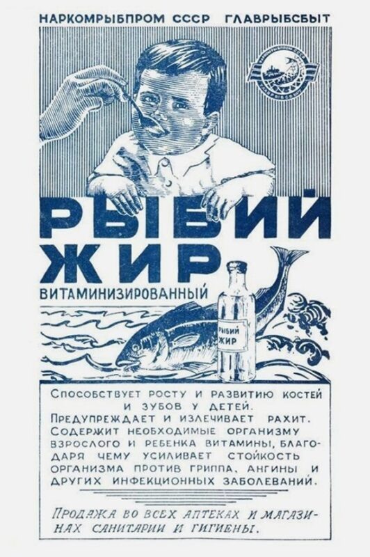 В СССР рыбий жир считался чуть ли не панацеей от всех болезней. Его активно давали в школах, детских садах, продавали в аптеках и рекламировали на плакатах в поликлиниках. В детсадах дети выстраивались в очередь и медсестра давала ложку с рыбьим жиром, а воспитатель — кусочек черного хлеба с солью, чтобы заесть (потому что вкус и запах, мягко говоря, был неприятный). Независимые исследования советских ученых показали, что рыбий жир содержит полезные для нашего организма полиненасыщенные жирные кислоты (ЭПК, ДГК) и витамины. Его начали назначать не только больным, но и здоровым людям в качестве профилактики заболеваний. Особенно настойчиво его давали детям для укрепления иммунной системы, костной ткани, сосудов и сердца. Это подтверждалось результатами: дети стали учиться лучше и меньше болеть. Но в конце 70-х годов рыбий жир неожиданно исчез из детских садов, школ, аптек и санаториев. Его запретили. Нет, рыбий жир не признали бесполезным. Это произошло исключительно из-за сырья и техно