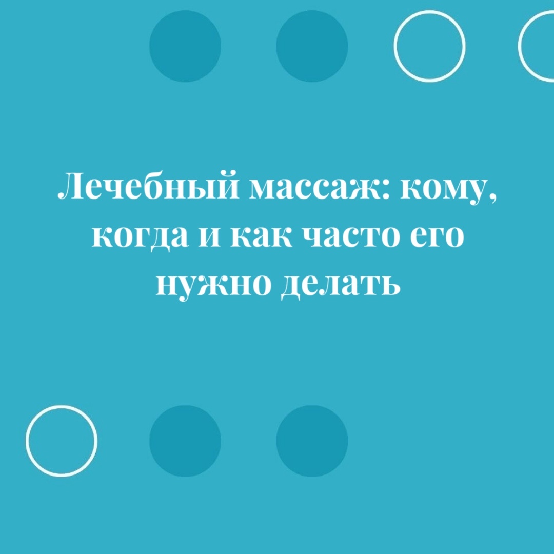 Здравствуйте, на связи снова Ваше избавление от боли и дискомфорта в организме! Сегодня мы хотим рассказать о лечебном массаже, его преимущества и рекомендации по частоте проведения сеансов. Что такое лечебный массаж? Лечебный массаж — это специальная медицинская процедура, для лечения и профилактики различных заболеваний и восстановления здоровья пациента. В отличии от гигиенических видов массажа, например расслабляющего или антицеллюлитного, который делается для улучшения фигуры, лечебный массаж показан по медицинским показаниям, например: при болях в спине, шее, суставах; головокружении; онемении рук и других симптомах заболеваний опорно-двигательного аппарата, нервной системы, респираторных заболеваниях, реабилитации после травм и при многих других заболеваниях. Виды лечебного массажа(по технике выполнения): 1. Классический массаж — универсальная техника, применяемая для улучшения кровообращения и снятия мышечного напряжения. 2. Точечный массаж — техника массажа, при которой иде