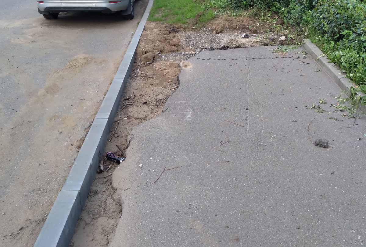 Казалось бы, ремонт, обновление - это хорошо, но это если он сделан хорошо, а если работы выполняются непрофессионалами и без желания и цели сделать хорошо, то получается так, как получилось в нашем районе. В прошлом году был так называемый капитальный ремонт нашего дома, в ходе которого гастарбайтеры из стран Средней Азии испортили нам дом (есть фотодоказательства), сделали его уязвимым, а теперь ведётся так называемое благоустройство улиц в нашем районе и сейчас я расскажу как это выглядит. В первую очередь повсюду валяются бруски спиленных деревьев, и это самое страшное, потому что идёт невероятное уплотнение в виде всё новых и новых застроек, а вот количество зелени уменьшается. Там, где были трава и клумбы теперь асфальт и это выглядит угнетающе. Там, где была плитка, теперь асфальт. Там, где был нормальный асфальт теперь положили новый, вот только теперь нужно передвигаться с большой осторожностью потому что очень много дырок и ям появилось вдоль новых бордюров. К тому же асфальт