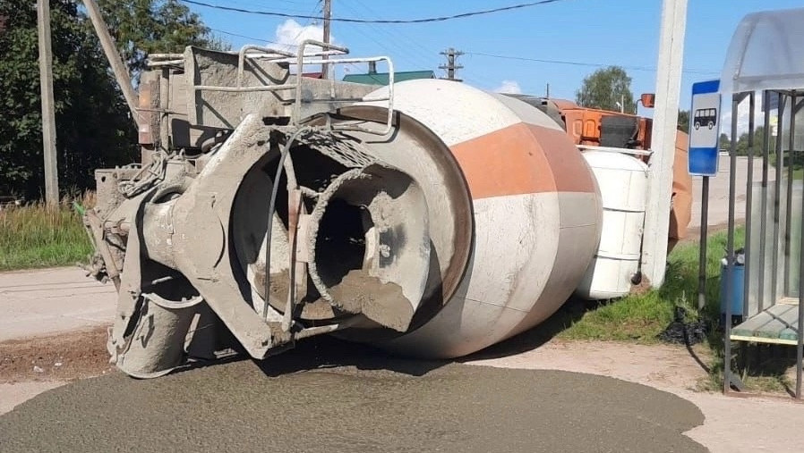 ДТП произошло днём, около 16:00, 18 августа, на улице Центральная в селе Юрьево-Девичье Конаковского муниципального округа Тверской области. Как сообщает Конаковская Госавтоинспекция, со стороны улицы Васильевская в сторону улицы Северная ехала бетономешалка на базе КамАЗа. За рулём был 33-летний мужчина. Водитель не выбрал безопасную скорость движения, вследствие чего автомиксер опрокинулся на дорогу. В ДТП пострадал сам водитель, его доставили в больницу скорой помощи в Твери. Проводится проверка. По словам очевидцев, вылившийся на дорогу бетон не пропал: его использовали для ремонт участка дороги и остановки. Видео телеграм-канала PUVKONAKOVO.