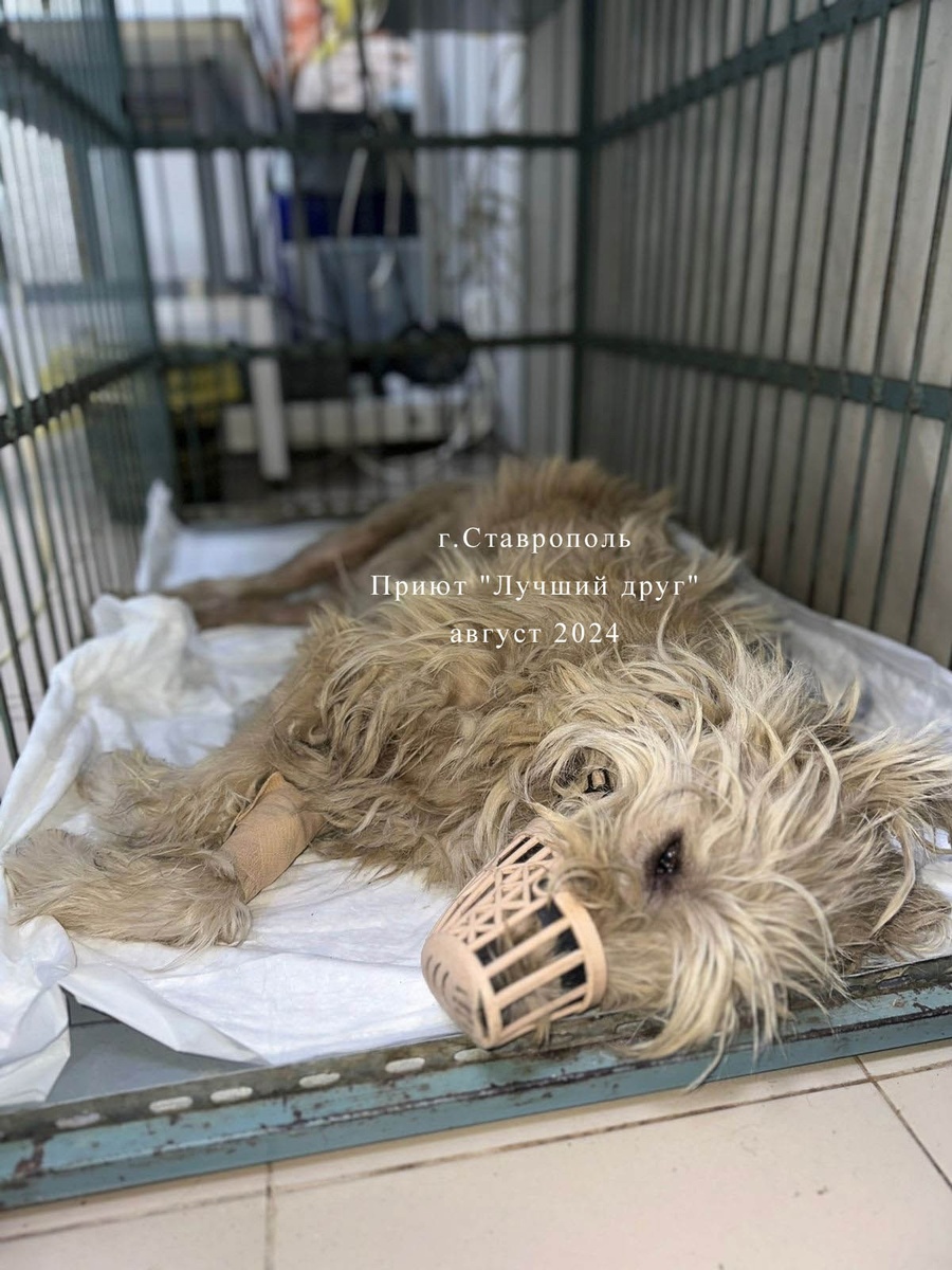 Да, да, тот самый пес Мишка, который уже был в приюте 1,5 года назад и из которого врачи доставали пули. После лечения кураторы забрали пса обратно на рынок, обещали заботиться и ухаживать за ним. Но пес в свободном хождении на улице - это ничейный пес, никто за ним постоянно присматривать не будет. Некоторое время назад Мишка перестал опираться на левую заднюю лапу, конечность висит плетью, а осмотреть себя пес не дает. Рана инфицировалась и начала гнить, пес перестал есть, значительно похудел. С большим трудом волонтеры привезли своенравного Мишаню в клинику, по рентгену у него перелом бедренной кости на левой тазовой конечности, сросшийся уже перелом правой задней лапы и пуля справа в подвздошной кости. Но это не так критично, как обнаруженное у пса новообразование предстательной железы. Взяли пункцию, там абсцесс, но вскрывать сейчас смысла нет. Стому не получился сделать из-за тяжелого состояния собаки. Если абсцесс вскрыть в брюшную полость, то получим по итогу спаечный процесс и