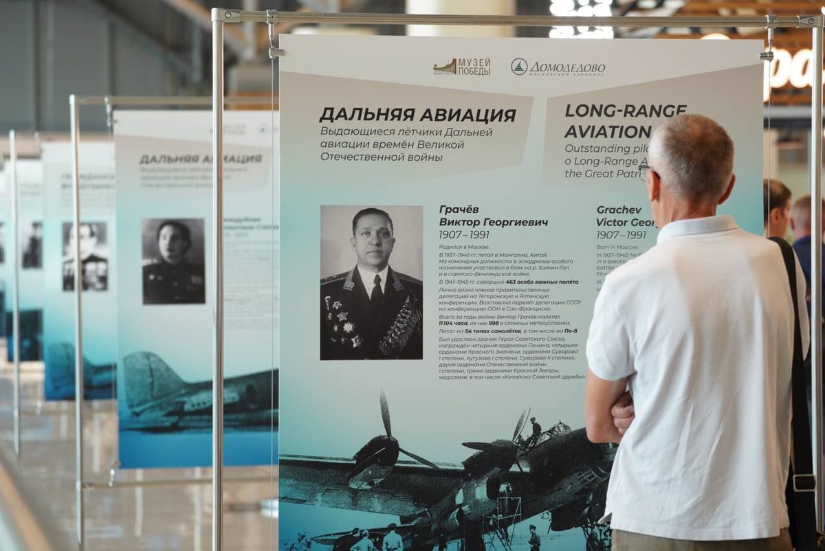 В Московском аэропорту Домодедово стартовал совместный проект воздушной гавани и Музея Победы – фотовыставка «Герои-летчики Великой Отечественной войны», приуроченная ко Дню воздушного флота.