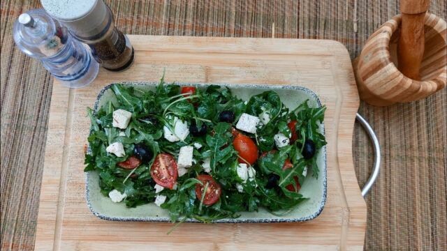 Рукола — растение, обладающее антиоксидантными свойствами, содержит большое количество витамина К и кальция. Этот продукт содержит высокое содержание клетчатки, а значит надолго дает ощущение сытости. Ниже представленный салат стоит попробовать уже ради этого.