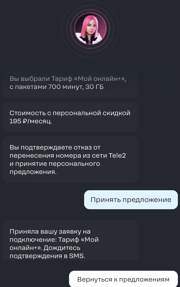 Был тариф Теле2 5 ГигаБайт и 200 минут в месяц за 375 рублей. Решил перевести номер в Т-Банк на 20 ГБ и 200 минут за 275 в месяц - симкарту с временным номером привезли бесплатно и процедуру переноса номера запускают сами (8 дней длительность). Узнав об этом Теле2 ничего не прислал. Зашёл в приложение Tele2, предложили 30 ГБ и 700 минут за 195 рублей в месяц. Остался на Теле2. Хоть и мелочь, но всем участникам - спасибо!
