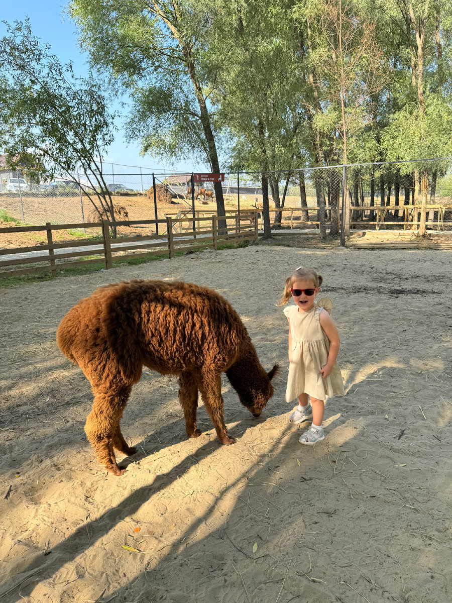 Я рассказываю об интересных местах в Казани и с дочкой мы приехали в гости к альпакам. Это Самые маленькие родственники верблюдов, их рост меньше метра. Помимо того, что альпаки милые. Они еще без запаха! И их шерсть гиппоаллергенная, поэтому их смело можно гладить. У них отсутствует верхний ряд зубов, поэтому их можно кормить. Морковь, кстати, выдают всем желающим во время прогулки. Альпаки супер дружелюбные и спокойные. Не смотря на разную расцветку - это один вид, и у каждого есть имя. Еще на территории парка есть кролики и благородные олени. Которых тоже можно покормить. 💰до 3х лет - бесплатно, с 4 до 14 лет - 700₽, взрослые - 800₽ (будни), 900₽ (выходные) Все гости проходят в вольеры к животным - группами , каждые 30 минут . Руководит процессом экскурсовод Координаты парка «Пача Мама» 55.746451, 48.610840 Находятся на территории загородного клуба «Свияга» ☎️ +7 (930) 011-07-83