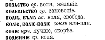 В старославянском ВОЛЯ, ВЪЛЯ. В: женский согласный звук [в], низкая частота, первоэлемент: ПЕРЕТЕКАНИЕ, функция поле, высоковибрационный контур в двухконтурной системе W/M. Руническое изображение: W - это высоковибрационный контур, структурирующий материю. Сначала формируется алгоритм, и только потом по этому алгоритму разворачивается материальное поле. Л: женский согласный звук [л], низкая частота, первоэлемент: ПЕРЕТЕКАНИЕ. Согласование созвучия всех вибраций по высоте, соподчинение звуков по тональности, модальности. JA - алгоритмы реализации перетекания выстраивают свою иерархическую структуру. Система световых алгоритмов. ВОЛЯ - вибрационное совпадение с управляющей волной. Однокоренное слово - волос, тот самый оселедец на голове. Также власть и волна (вибрация). Смотреть статью ВОЛХВ https://dzen.ru/a/ZuxPo5V4yEGjar-R *** Пора, мой друг, пора! покоя сердце просит —