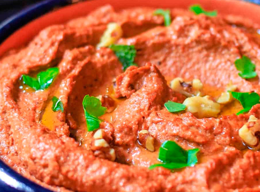 Мухаммара - это соус из красного перца и грецких орехов, распространенный на юго-востоке Турции.