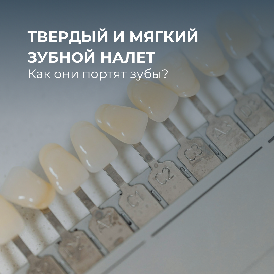 Сегодня поговорим о незаметных, но очень важных «врагах» наших зубов — твердых и мягких налетах. Что такое налет? Это наложение бактерий, остатков пищи и слюны на поверхность зубов, которое может скапливаться в течение дня. Существует два основных типа налета: мягкий и твердый. Мягкий налет образуется в основном из остатков пищи и бактерий. Он легко удаляется при регулярной гигиене полости рта — чистке зубов и использовании зубной нити. Однако с течением времени, если не уделять должного внимания, мягкий налет может минерализоваться и превратиться в твердый налет, или зубной камень. Твердый налет (зубной камень) — это откладывающиеся на зубах минерализованные остатки мягкого налета. Он уже не удаляется обычной зубной щеткой и требует профессионального очищения у стоматолога. Зубной камень становится местом, где продолжают размножаться бактерии, что может вызывать воспаление десен, кариес и другие стоматологические проблемы. Почему важно удалять оба вида налета? Мягкий налет — это нач