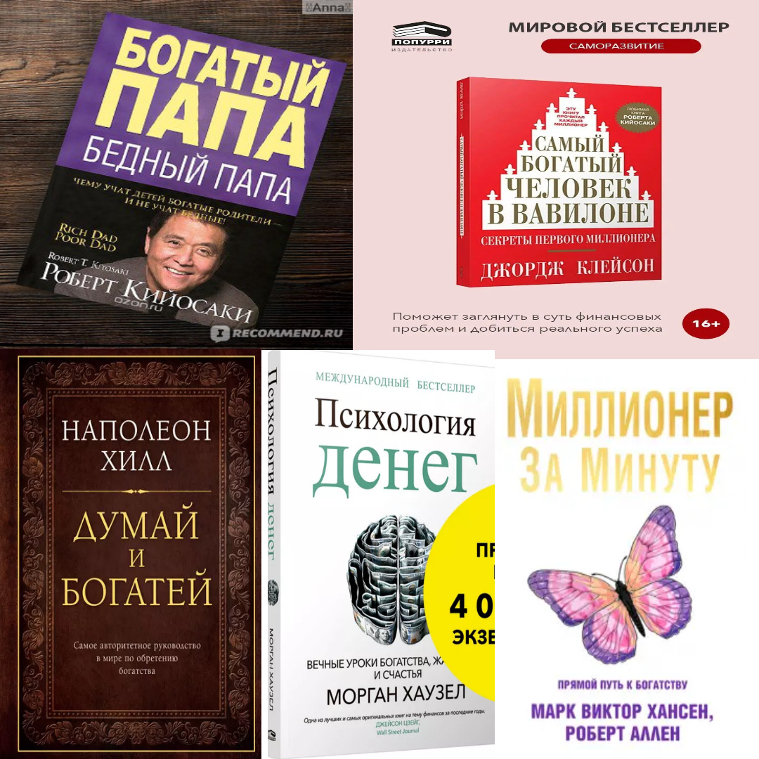 Финансовая грамотность — ключ к финансовой свободе и стабильности. Однако, многие люди продолжают сталкиваться с трудностями в управлении своими деньгами. Хорошей новостью является то, что правильные книги могут изменить ваше отношение к финансам, научить вас новым подходам и помочь достичь финансовых целей. В этой статье я представлю пять книг, которые помогут вам взглянуть на свои финансы по-новому. 1. "Богатый папа, бедный папа" — Роберт Кийосаки Описание: Эта книга уже давно стала классикой и настольной для тех, кто хочет научиться управлять деньгами. Роберт Кийосаки рассказывает историю о двух «папах» — богатом и бедном — и о том, как их подходы к деньгам сформировали его мышление. Ключевые идеи: · Разделение понятий «активы» и «пассивы». · Важность финансового образования. · Как мышление богатого человека отличается от мышления бедного. Пример применения: После прочтения этой книги вы можете начать инвестировать в активы, такие как недвижимость или акции, вместо того чтобы трат