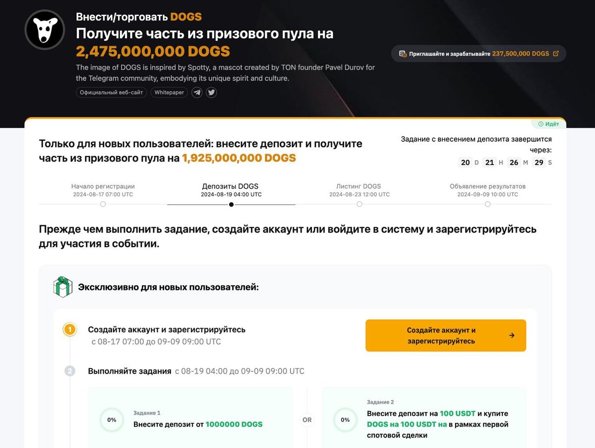 - Делаем торговый объём от 500 USDT в DOGS на споте