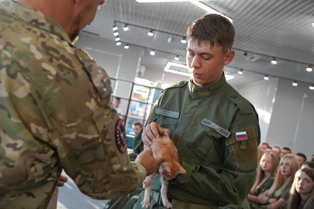 Талисманом волгоградского оборонно-спортивного лагеря «Авангард» станет рыжий котёнок. Его спасли в зоне СВО бойцы штурмового отряда «Бессмертный Сталинград». Сегодня котёнок, которого назвали Майор, был передан в руки волгоградских ребят. В этой смене отдыхают и занимаются дети Донбасса и Новороссии, Белгородской и Волгоградской областей. Рыжему уже приготовили место обитания, корм, персональную миску. Как уже сообщал РИАЦ, штурмовой отряд «Бессмертный Сталинград» полностью состоит из добровольцев, сражается в зоне СВО. Для курсантов Центра «ВОИН» в лагере «Авангард» бойцы провели мастер-классы по различным военным дисциплинам и представили фильм об отряде, который прогремел на международном фестивале «RT.Док: Время Героев», войдя в пятерку лучших кинолент. Лагерь «Авангард» создан в нынешнем году. В конце мая в гостях у ребят побывал губернатор Андрей Бочаров. Именно глава региона обозначил задачу, обеспечить круглогодичный отдых детей. Лагерь «Авангард» полностью отвечает поставленн
