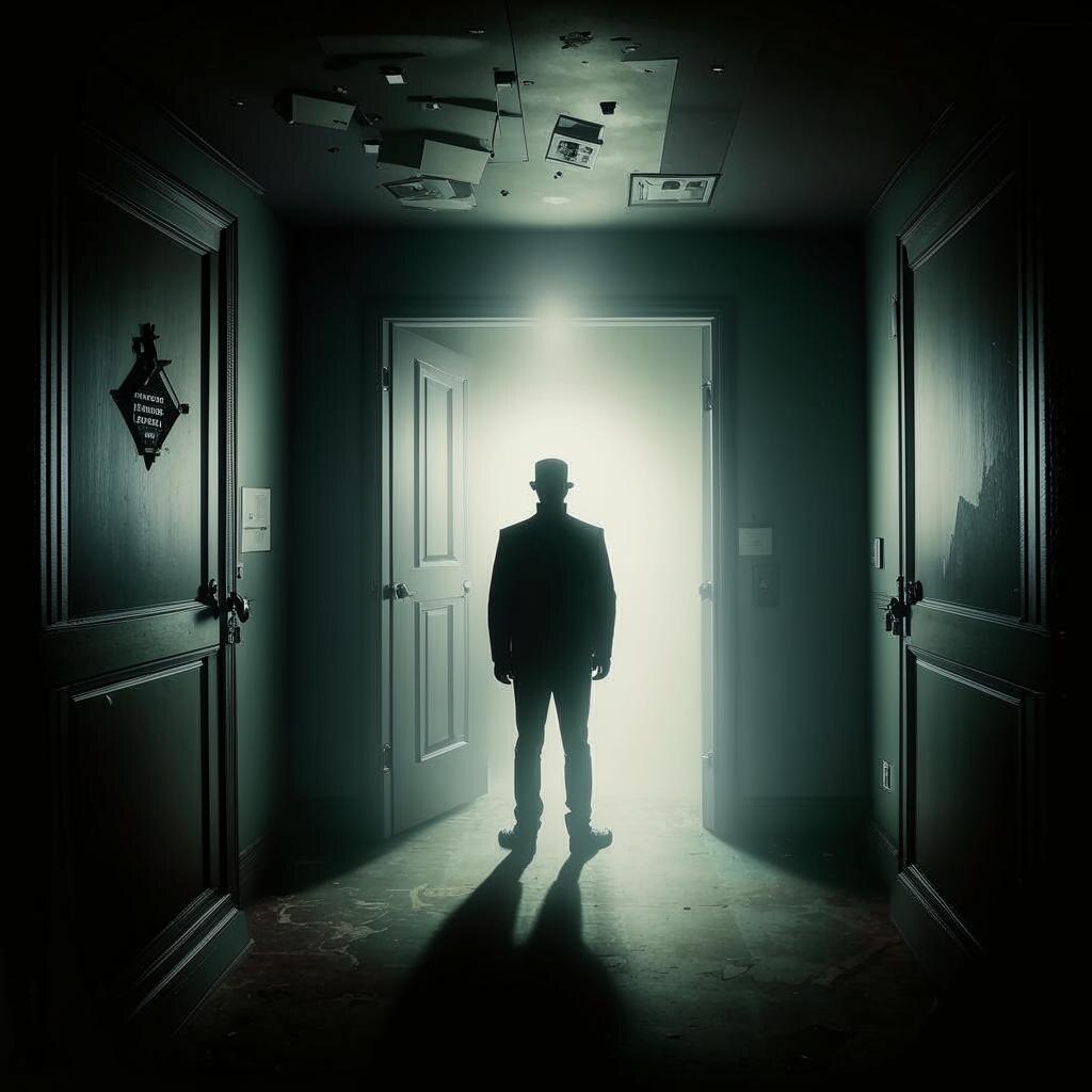 Вечером первого дня случилось нечто странное. По камере ночного видения, встроенной в очки, я видел, как клиент осторожно продвигается по коридору. Мрачная музыка, стоны, треск и стуки могли впечатлить кого угодно, но не меня. Я сам подбирал и монтировал звуковую дорожку. Вот парень вошел в комнату, где за дверью притаился я, но дальше сценарий изменился.