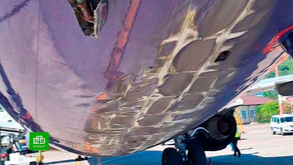 Boeing 737–800 авиакомпании Smartavia накануне во время приземления задел хвостовой частью взлетно-посадочную полосу, из-за чего обшивка фюзеляжа буквально стерлась до дыр.