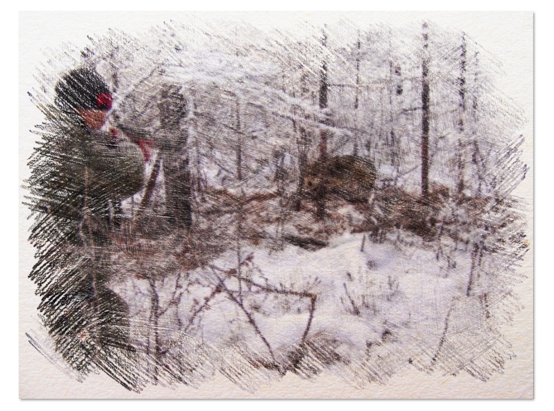 Сквозь густую морозную мглу двигался одинокий силуэт. Это был охотник Антон, который, несмотря на свирепую зиму, решился выйти на охоту за волком, наводившим страх на окрестности. Его шаги послышались чёткими и уверенными, но под ногами хрустела покрытая инеем трава, запечатлевшая зимнюю сказку.