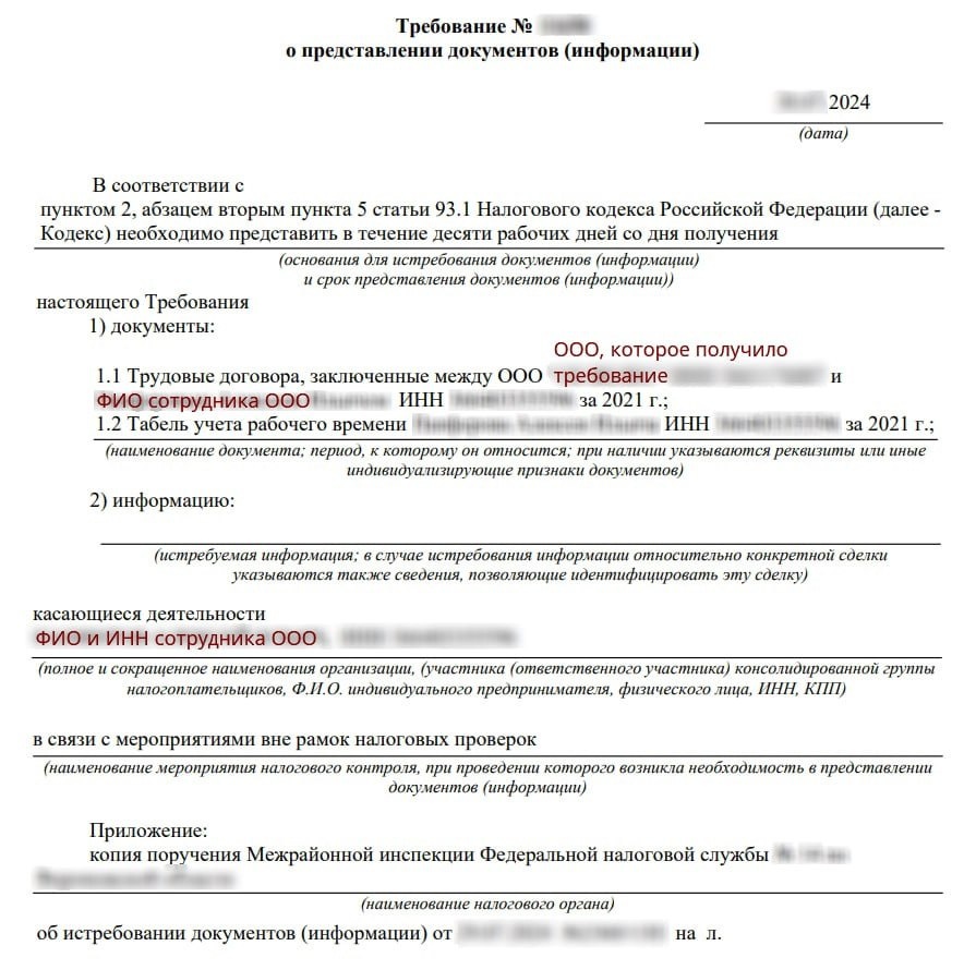 В данном требовании налоговый орган запрашивает документы по трудовым отношениям с работником.