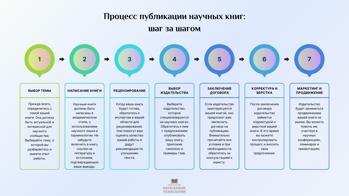Процесс публикации научной книги может показаться сложным и трудоемким, но на самом деле он состоит из нескольких простых шагов. В этой статье мы разберем каждый из них и дадим полезные советы, которые помогут вам успешно опубликовать свою книгу. Прежде всего, определитесь с темой вашей книги. Она должна быть актуальной и интересной для научного сообщества. Выбирайте тему, в которой вы разбираетесь и имеете опыт работы. После выбора темы начните писать книгу. Учтите, что научные книги должны быть написаны в академическом стиле, с использованием научного языка и терминологии. Также не забудьте включить в книгу ссылки на литературу и источники, подтверждающие ваши выводы. Когда ваша книга будет готова, обратитесь к экспертам в вашей области для рецензирования. Они помогут вам оценить качество вашей работы и дадут рекомендации по улучшению текста. Выберите издательство, которое специализируется на научных книгах. Обратитесь к ним с предложением опубликовать вашу книгу, приложив синопсис и