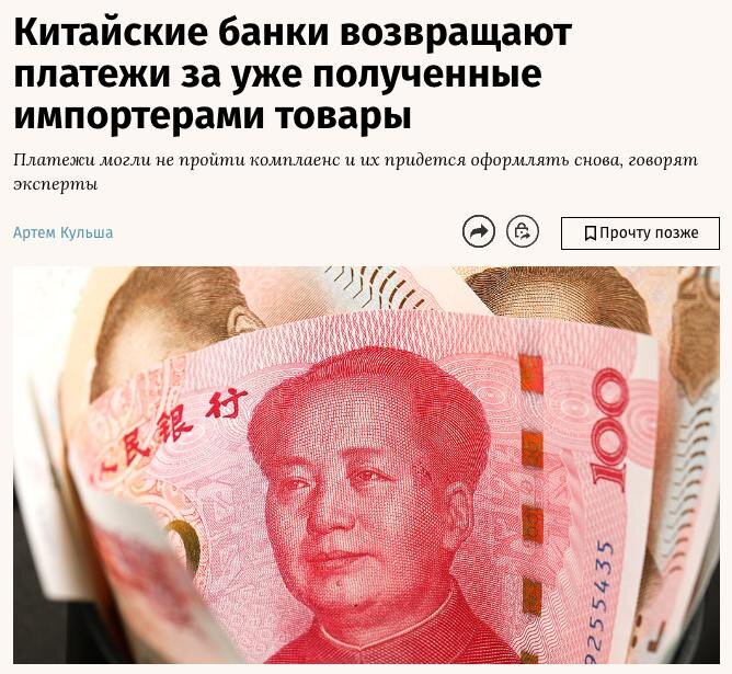 Банки в КНР стали возвращать платежи из России уже за полученные товары. Чего боится Китай.