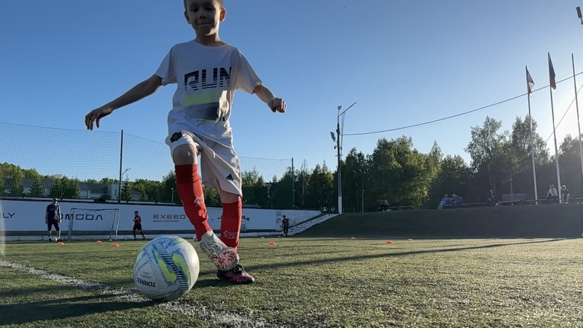 Ведение мяча – один из ключевых навыков, который должен освоить каждый начинающий футболист. Эти простые упражнения помогут вашему ребенку научиться лучше контролировать мяч и развить координацию на поле. 1. Змейка Поставьте на небольшом расстоянии друг от друга 5-7 конусов или любых предметов (например, бутылок). Задача – вести мяч между конусами, не касаясь их. Это упражнение развивает точность и контроль мяча на ограниченном пространстве. 2. Ведение с остановкой Ребенок ведет мяч по прямой линии, чередуя ноги. В любой момент по вашему сигналу он должен резко остановить мяч подошвой одной из ног и затем продолжить ведение. Это упражнение учит ребенка быстро реагировать и менять темп игры. 3. Восьмерка Расположите два конуса на расстоянии 2-3 метров друг от друга. Ребенок должен вести мяч, описывая вокруг них восьмерку. Это упражнение помогает улучшить контроль мяча при поворотах и маневрировании. 4. Ведение на скорость Разметьте на поле участок длиной 10-15 метров. Задача ребен