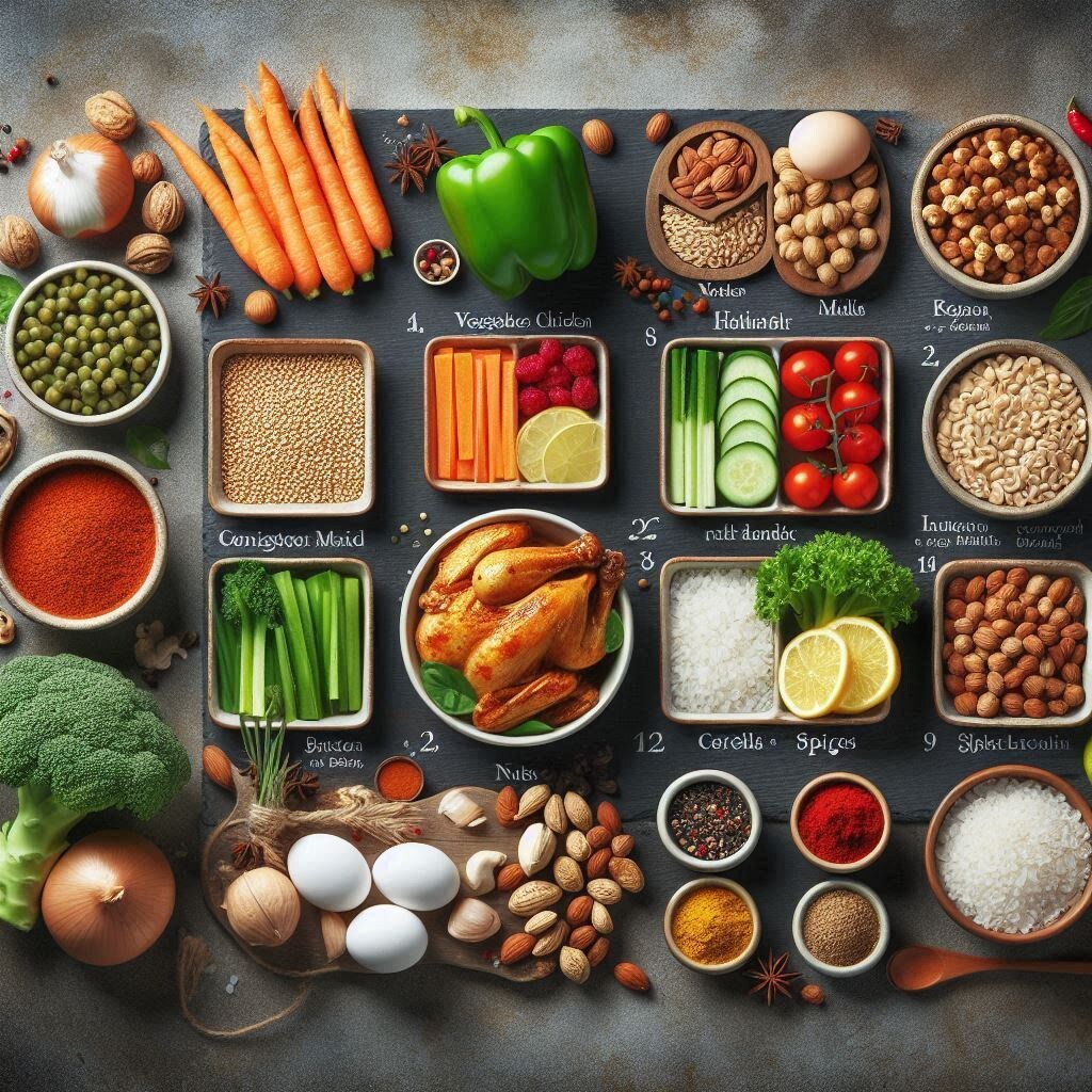 Завтрак - Омлет с овощами и сыром Ингредиенты: Яйца – 3 шт. Помидоры – 100 гр Перец сладкий (красный или желтый) – 50 гр Нежирный сыр – 50 гр Оливковое масло – 1 ч. ложка Приготовление: 1. Взбейте яйца в миске, добавьте нарезанные помидоры и перец. 2. Разогрейте сковороду с оливковым маслом. 3. Вылейте яично-овощную смесь и готовьте на среднем огне до готовности, посыпьте сыром. Второй завтрак - Миндаль (орехи) – 20 гр - Яблоко – 1 среднее Обед - Куриное филе с булгуром и овощами Ингредиенты: - Куриное филе – 250 гр ( 125гр обед и 125гр ужин) - Булгур – 50 гр - Красный перец – 100 гр - Оливковое масло – 1 ч. ложка - Специи (соль, перец, любимые травы) – по вкусу Приготовление: 1. Отварите булгур согласно инструкциям на упаковке. 2. Обжарьте куриное филе на сковороде с оливковым маслом и любимыми специями до золотистой корочки. Разделите получившееся филе пополам, вторую половину отложите на ужин. 3. Отдельно обжарьте нарезанный красный перец до мягкости, либо ешьте перец свеж