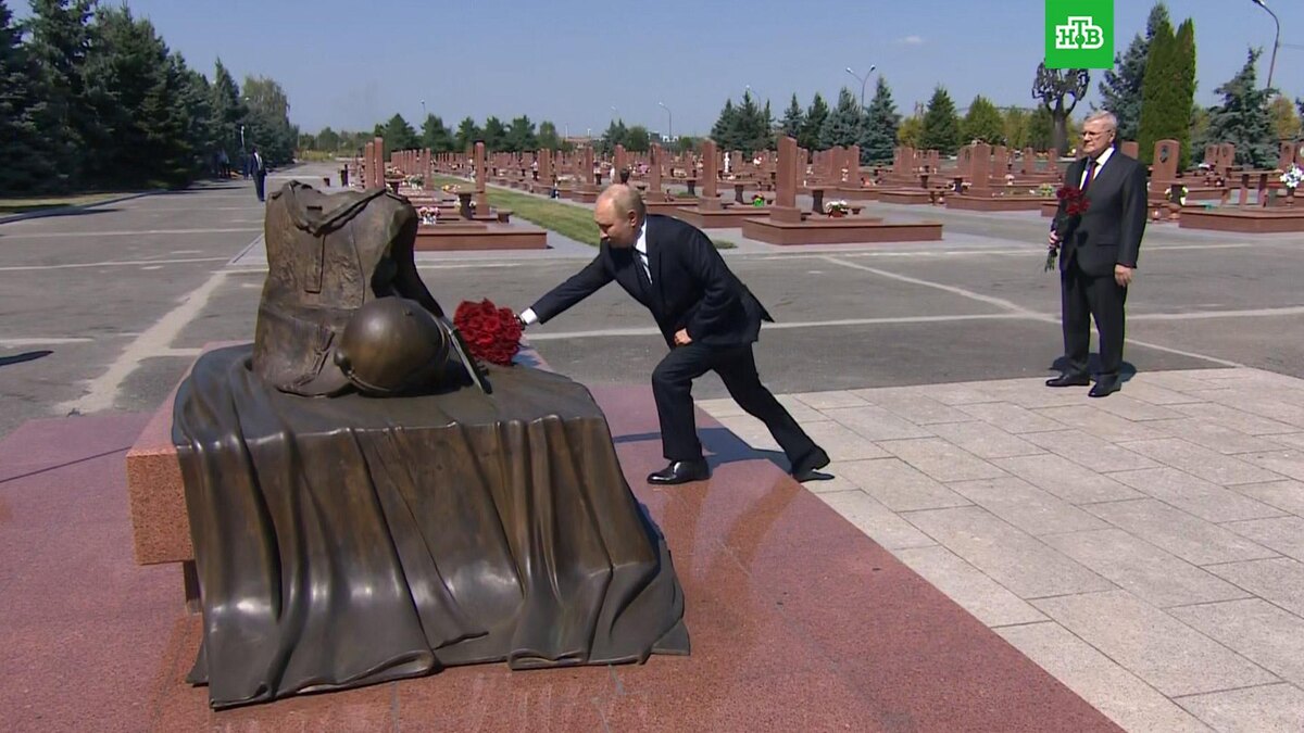 [ Смотреть видео на сайте НТВ ] Президент РФ Владимир Путин приехал в Беслан. Об этом сообщила пресс-служба Кремля. В Беслане президент РФ посетил мемориальный комплекс «Город ангелов». Там захоронены 266 из 334 погибших в теракте в школе Беслана в сентябре 2004 года. Путин почтил память погибших заложников, возложив цветы к расположенному на территории «Древу скорби». Кроме того, президент возложил цветы к памятнику погибшим бойцам спецназа подразделений «Альфа» и «Вымпел», погибшим при штурме школы. Боевики удерживали там заложников в течение трех суток. Также Путин посетил саму школу №1, которая сейчас представляет собой мемориальный комплекс, и возложил там цветы. Посетил президент и детские центры дополнительного образования в Беслане — станции юных техников и юных натуралистов. Их открыли в 2022 году. [ Смотреть видео на сайте НТВ ]