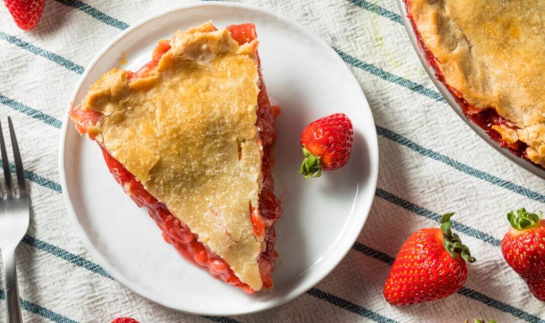 Пирог с ревенём и клубникой 🧑🏻🍳 Приготовление: 1. Соедините 350 г муки и соль. Разотрите в крошку с 200 г холодного масла. Постепенно влейте воду и быстро замесите тесто. 2. Разделите тесто на две равные части. Сформируйте из них круги. Заверните в пищевую плёнку и уберите в холодильник на 1 час. 3. Разогрейте духовку до 220 °C. Подготовьте круглую форму для запекания диаметром 22 см. 4. Очистите ревень. Нарежьте его и клубнику. Смешайте с 70 г муки и сахаром. 5. Присыпьте стол мукой. Раскатайте первую порцию теста в тонкий пласт. Осторожно перенесите в форму, прижмите ко дну и стенкам. 6. Наполните основу начинкой. Сверху выложите оставшийся кусочек масла. Накройте пластом из второй части теста. Подровняйте и защипните края. 7. Сделайте в центре пирога несколько надрезов. Посыпьте его сахаром. 8. Выпекайте 20 минут. Уменьшите температуру до 180 °C и готовьте ещё около 40 минут до румяности. Пирог с ревенём и клубникой 📖 Ингредиенты: - Ревень - 400 г. - Клубника - 400 г. -
