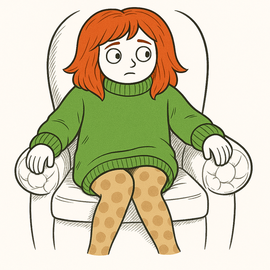 9. Сидит со скрещенными лодыжками